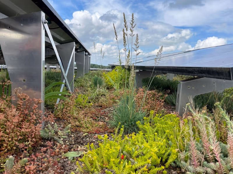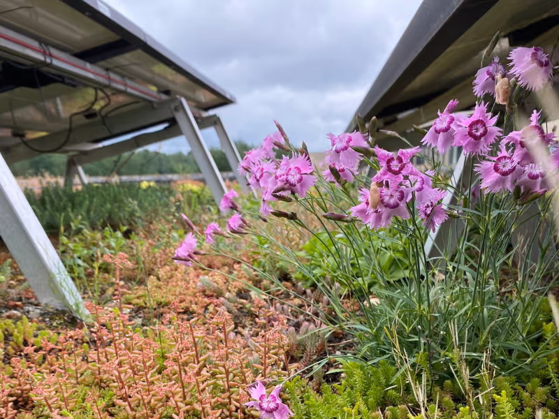 Dankzij onze unieke Airframes worden zonnepanelen niet ín, maar bóven het groen geplaatst. Dat maakt het verschil: Volledig gebruik van het dakoppervlak, maximale biodiversiteit, meer waterberging, 4–15% extra stroomopbrengst én makkelijk onderhoud.
